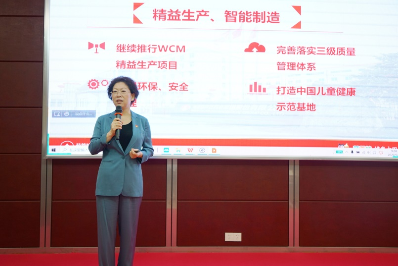 刘景萍董事长引用席大大总书记在2022年博鳌亚洲论坛上的重要讲话勉励全体与会人员,在海南自贸港建设的机遇期,认真学习贯彻落实省第八次党代会精神,坚持党建引领企业发展,将尊龙凯时药业集团打造成中国儿童健康领军企业。